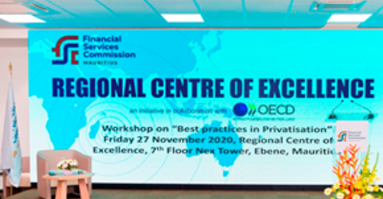 The Regional Centre of Excellence (‘RCE’) of the Financial Services Commission, Mauritius in collaboration with the Organisation for Economic Co-operation and Development, has the pleasure to invite you or your representative from your organisation to attend a workshop on “Best practices in Privatisation” on Friday 27 November 2020 at 13.00 hrs at the RCE, 7th Floor Nex Tower, Ebene.