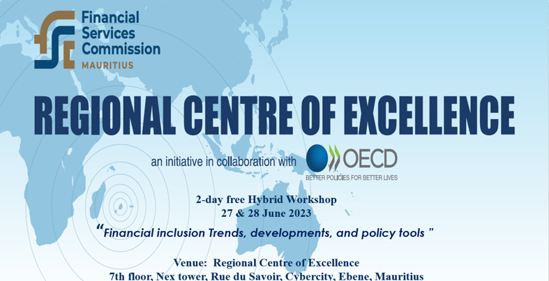 The Regional Centre of Excellence (RCE) of the Financial Services Commission, Mauritius (FSC) in collaboration with the Organisation for Economic Co-operation and Development (OECD), will host a 2-day free hybrid workshop on “Financial inclusion Trends, developments, and policy tools”