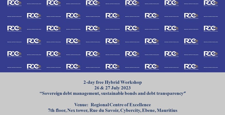 The Regional Centre of Excellence (‘RCE’) of the Financial Services Commission, Mauritius (‘FSC’) in collaboration with the Organisation for Economic Co-operation and Development (‘OECD’), will host a 2-day hybrid workshop on “Sovereign debt management, sustainable bonds and debt transparency” on Wednesday 26 July 2023 at 10:30 - 15:45 hrs (Mauritius Time) & Thursday 27 July 2023 at 13.00-16.00 hrs (Mauritius Time).